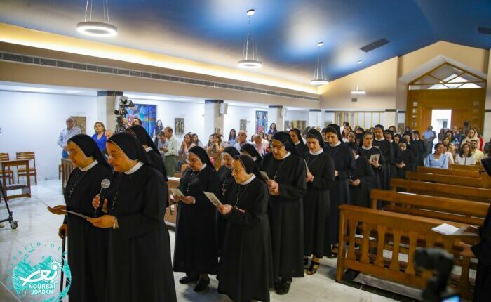 بمناسبةِ عيدِ العذراء سيدةِ الورديه ترأس قدسُ الأب الدكتور جهاد شويحات قداساً احتفالياً في كنيسةِ دير بيتِ الزياره التابعِ لرهبنةِ الورديه في منطقةِ دابوق بعمان بحضور الأخت صوفيا حتر الرئيسةِ العامه لرهبنةِ الورديةِ المقدسه ومشاركةِ عددٍ من الإباءِ الكهنةِ والشمامسه وجمعٍ من راهباتِ الورديه القادماتِ من عدةِ مراكز اضافةً الى حشدٍ كبيرٍ من المؤمنين وفي عظةِ القداس عبّر الاب شويحات عن ألمهِ وحزنه بأنَّ هذا العيد يتزامنُ مع ما تشهدُه منطقتنا من حروبٍ وقتلٍ ودمار وهذا ما يدعونا الى الاهتمامِ بالصلاةِ والتحلي بالصبرِ والايمانِ والدعاءِ الى الله بوقفِ هذه المعاناةِ التي يواجهها شعوبُ المنطقه ثم ألقت الأخت مادلين دبابنه النائبُ العام لرهبنةِ الورديه كلمةً استذكرت فيها زمنَ التضحياتِ والصبرِ والمثابره التي كانت عنوانَ أخواتٍ لنا واكبنَ البداياتِ الصعبه التي جعلت الورديةَ تُبصر النور وخلال القداس جددّت الراهباتُ نذورَهن أمامَ أبناءِ الرعيه الذين قدّموا بدورهم التهنئةَ لهنَ بعيدِهن المبارك